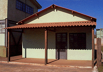 A cobertura pode ser em estrutura de madeira ou metálica, com telhas conforme determinação de projeto.